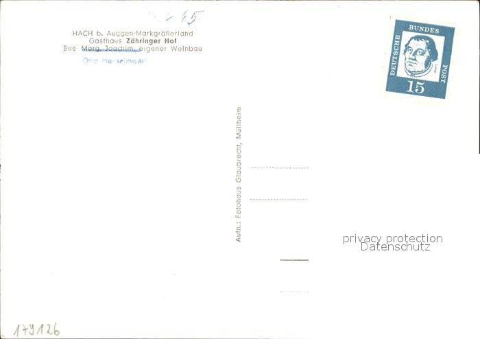 32036346 Hach Gasthaus Zaehringer Hof postalisch nicht gelaufen Erhaltung siehe scans KatCode: 11110008315004