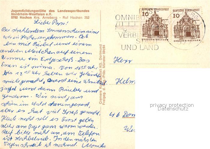 73228601 alte Postkarte Hachen Sauerland Fliegeraufnahme Jugendbildungsstaette postalisch gelaufen Erhaltung siehe scans [NatalD47] KatCode: 11110005958044