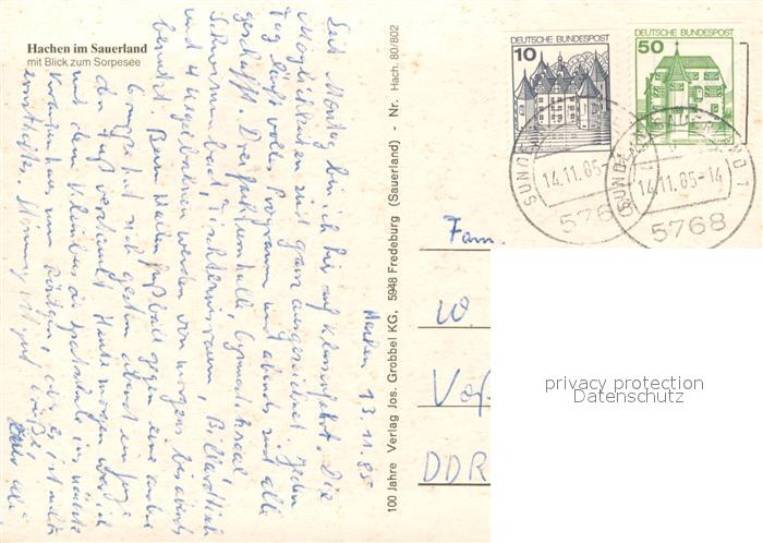 73724906 alte Postkarte Hachen Sauerland Fliegeraufnahme mit Sorpesee postalisch gelaufen Erhaltung siehe scans [WerneD78] KatCode: 11110005958044