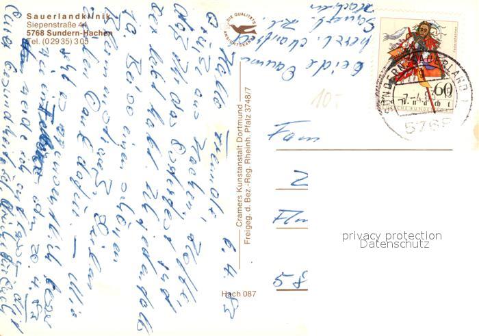 73228599 alte Postkarte Hachen Sauerland Fliegeraufnahme Sauerlandklinik postalisch gelaufen Erhaltung siehe scans [NatalD47] KatCode: 11110005958044