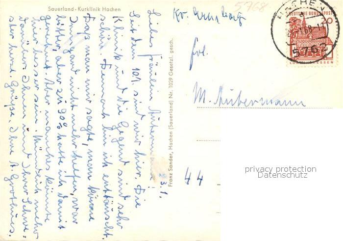 73155409 alte Postkarte Hachen Sauerland Kurklinik Hachen postalisch gelaufen Erhaltung siehe scans [WerneD78] KatCode: 11110005958044