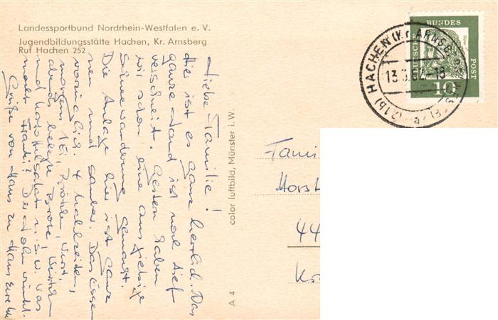 73885705 alte Postkarte Hachen Sauerland Landessportbund NRW Jugendbildungsstaette Fliegeraufnahme postalisch gelaufen Erhaltung siehe scans [FriedD77] KatCode: 11110005958044