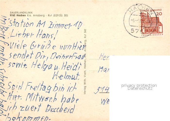 73323251 alte Postkarte Hachen Sauerland Sauerlandklinik postalisch gelaufen Erhaltung siehe scans [FriedD77] KatCode: 11110005958044