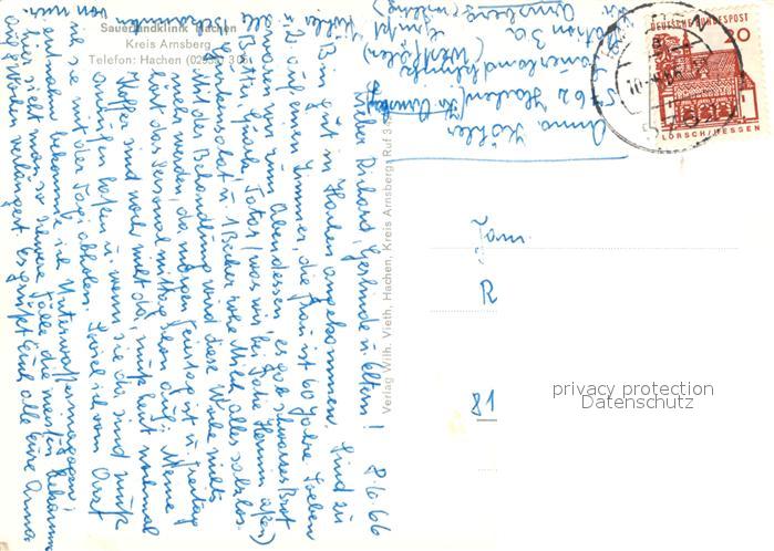 72962915 alte Postkarte Hachen Sauerland Sauerlandklinik Hachen postalisch gelaufen Erhaltung siehe scans [WerneD78] KatCode: 11110005958044