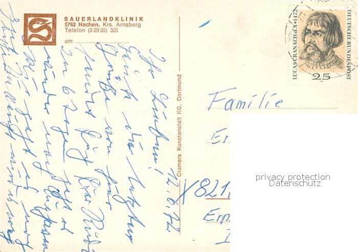 73644585 alte Postkarte Hachen Sauerland Sauerlandklinik postalisch gelaufen Erhaltung siehe scans [FriedD77] KatCode: 11110005958044