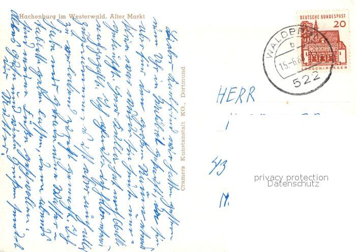 72939421 alte Postkarte Hachenburg Westerwald Alter Markt postalisch gelaufen Erhaltung siehe scans [WerneD78] KatCode: 11110007143229