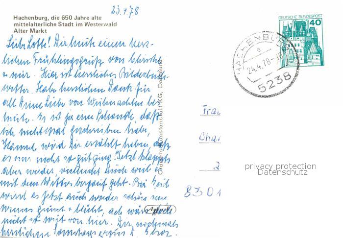 72627647 alte Postkarte Hachenburg Westerwald Alter Markt postalisch gelaufen Erhaltung siehe scans [WerneD78] KatCode: 11110007143229
