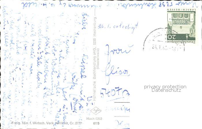 72314089 alte Postkarte Hachenburg Westerwald Fliegeraufnahme postalisch gelaufen Erhaltung siehe scans KatCode: 11110007143229