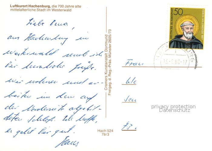 72947416 alte Postkarte Hachenburg Westerwald Fliegeraufnahme postalisch gelaufen Erhaltung siehe scans [WerneD78] KatCode: 11110007143229
