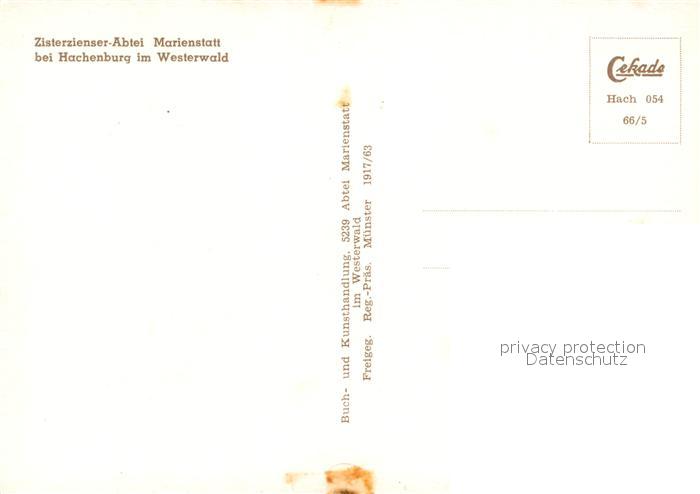 73054727 Hachenburg Westerwald Zisterzienser Abtei Marienstatt Fliegeraufnahme postalisch nicht gelaufen Erhaltung siehe scans [WerneD78] KatCode: 11110007143229