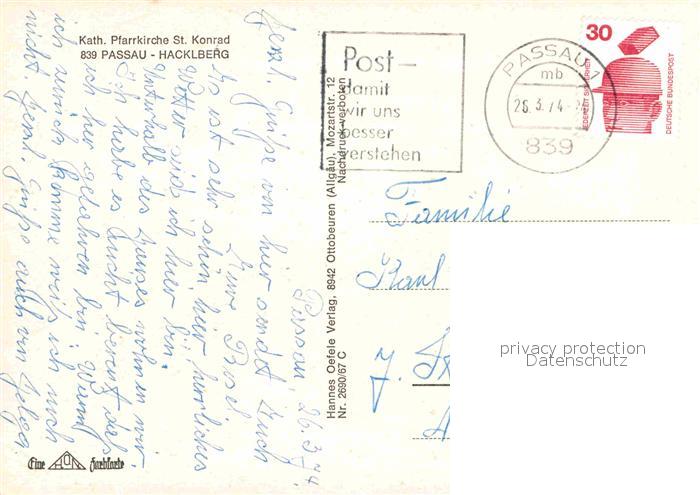 72786388 alte Postkarte Hacklberg Katholische Pfarrkirche Sankt Konrad postalisch gelaufen Erhaltung siehe scans [AndreD76] KatCode: 11110009262000