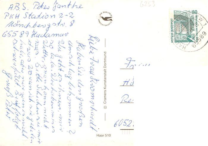 73936217 alte Postkarte Hadamar Westerwald Alte Bruecke am Schloss Liebfrauenkirche St Anna Krankenhaus Herzenberg Kapelle Masisches Internat Moenchberg Schwimmbad postalisch gelaufen Erhaltung siehe scans [FriedD77] KatCode: 11110006533007