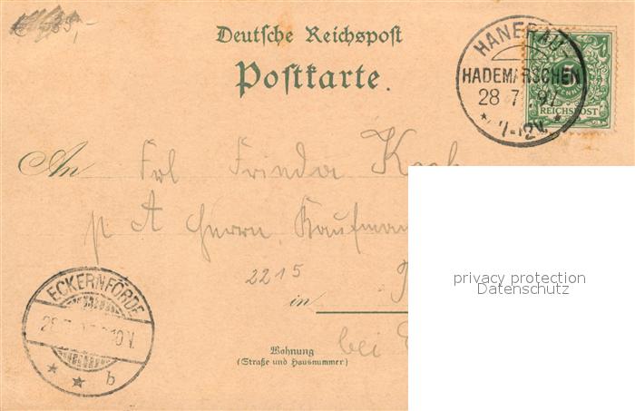 33139136 alte Postkarte Hademarschen Kirche Bahnhof Kaiserdenkmal Kaufhaus postalisch gelaufen Erhaltung siehe scans [KathaD81] KatCode: 11110001058072