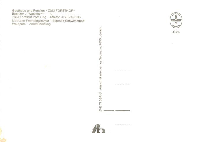 73870285 Haeg-Ehrsberg Baden Gasthaus Pension Zum Forsthof Gaststube Kapelle postalisch nicht gelaufen Erhaltung siehe scans [FriedD77] KatCode: 11110008336106