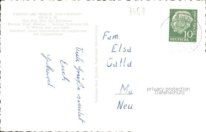 31910143 alte Postkarte Haeg-Ehrsberg Gasthof-Pension Zum Forsthof postalisch gelaufen Erhaltung siehe scans KatCode: 11110008336106