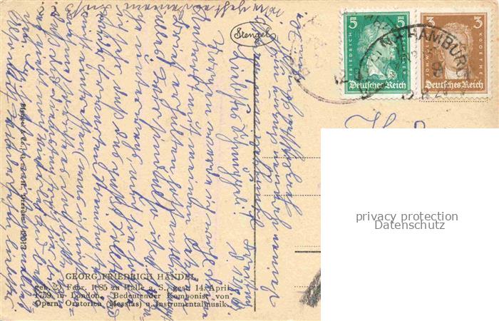 74035727 alte Postkarte Haendel Georg Friedrich London Instrumentalmusik postalisch gelaufen Erhaltung siehe scans [SanaeD93] KatCode: 22560000003000
