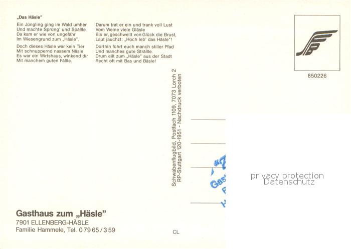 73658695 Haesle Gasthaus zum Haesle Gedicht Fliegeraufnahme postalisch nicht gelaufen Erhaltung siehe scans [FriedD77] KatCode: 11110008136018