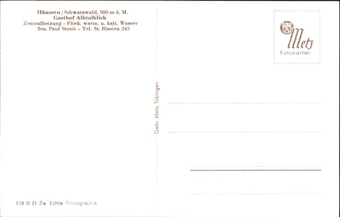 40805725 Haeusern chwarzwald Gasthof Albtalblick St. Blasien postalisch nicht gelaufen Alte Ansichtskarte Postkarte Katcode