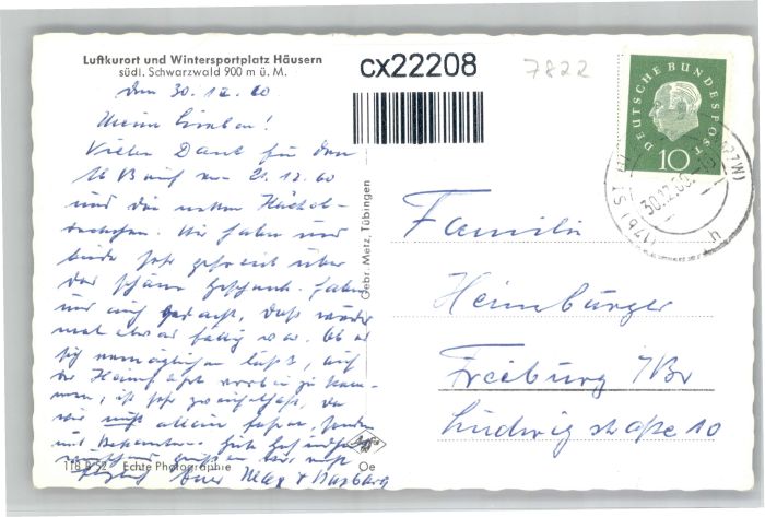 30739612 alte Postkarte Haeusern Schwarzwald postalisch gelaufen KatCode: 11110008337045