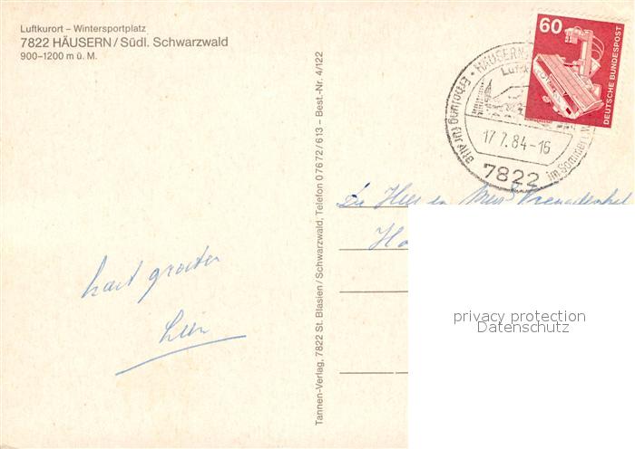 72930977 alte Postkarte Haeusern Schwarzwald Bildstock Kirche St Fridolin Im Kurgarten Teilansicht Idyll Fridolinsbrunnen postalisch gelaufen Erhaltung siehe scans [WerneD78] KatCode: 11110008337045