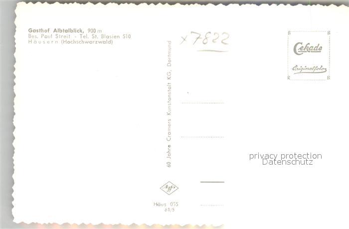 42942426 Haeusern Schwarzwald Gasthaus Albtalblick postalisch nicht gelaufen Erhaltung siehe scans [AndreD76] KatCode: 11110008337045