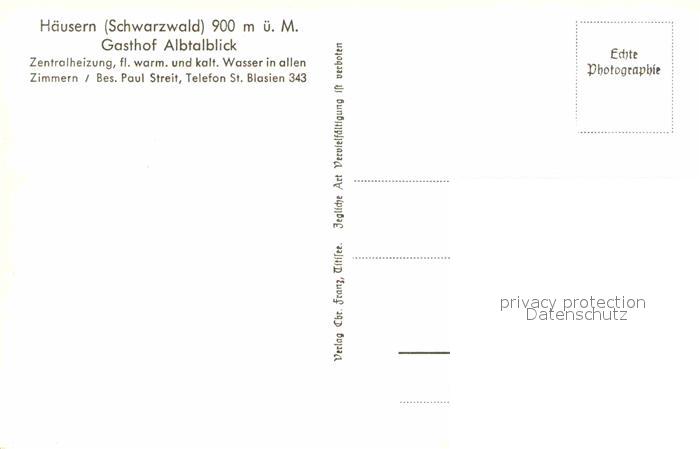 32838896 Haeusern Schwarzwald Gasthaus Albtalblick postalisch nicht gelaufen Erhaltung siehe scans [KathaD81] KatCode: 11110008337045