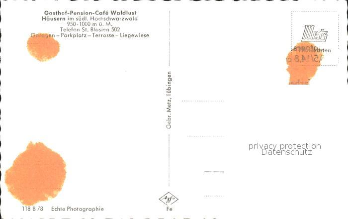 41759364 Haeusern Schwarzwald Gasthaus Pension Cafe Waldlust postalisch nicht gelaufen Erhaltung siehe scans KatCode: 11110008337045