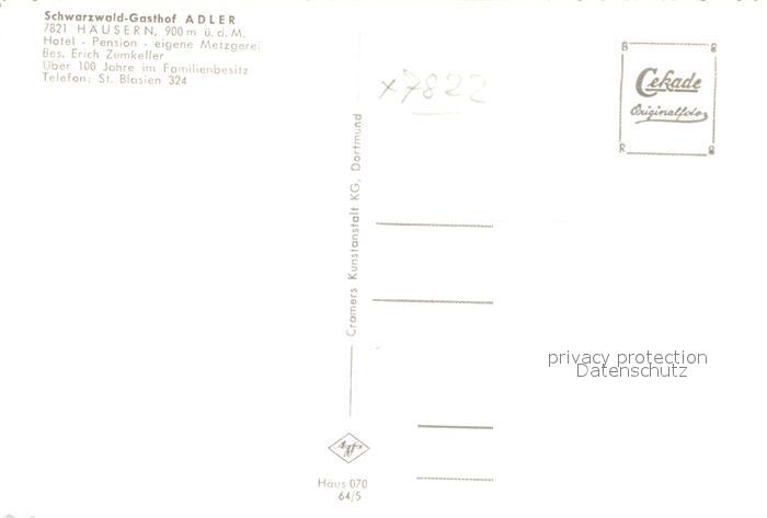 42942378 Haeusern Schwarzwald Gasthof Adler postalisch nicht gelaufen Erhaltung siehe scans [AndreD76] KatCode: 11110008337045
