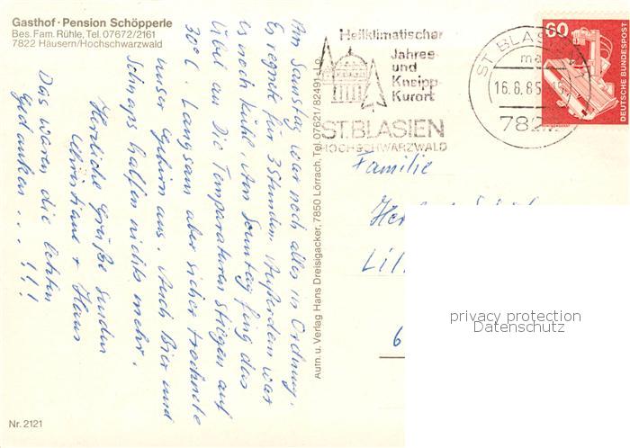 73845535 alte Postkarte Haeusern Schwarzwald Gasthof Pension Schoepperle Gaststube Fliegeraufnahmen postalisch gelaufen Erhaltung siehe scans [WerneD78] KatCode: 11110008337045