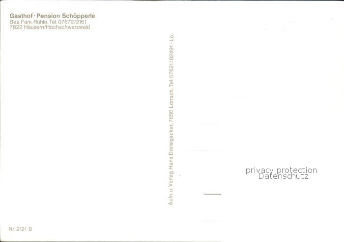 72549677 Haeusern Schwarzwald Gasthof Pension Schoepperle postalisch nicht gelaufen Erhaltung siehe scans [AndreD76 kv022box] KatCode: 11110008337045
