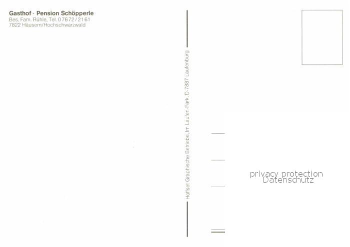 72663240 Haeusern Schwarzwald Gasthof Schoepperle postalisch nicht gelaufen Erhaltung siehe scans [NatalD47] KatCode: 11110008337045