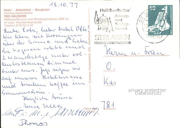 71830633 alte Postkarte Haeusern Schwarzwald Hotel Albtalblick postalisch gelaufen Erhaltung siehe scans KatCode: 11110008337045