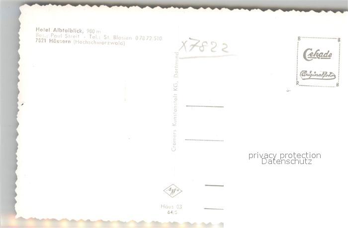 42943470 Haeusern Schwarzwald Hotel Albtalblick postalisch nicht gelaufen Erhaltung siehe scans [AndreD76] KatCode: 11110008337045