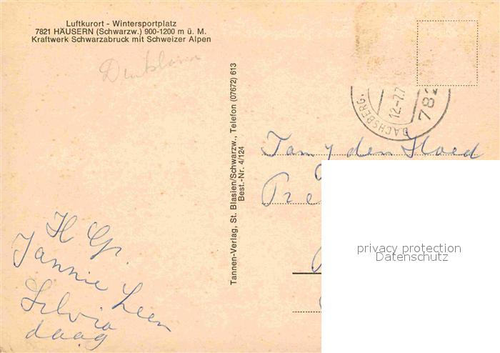 72919358 alte Postkarte Haeusern Schwarzwald Kraftwerk Schwarabruck Schweizer Alpen postalisch gelaufen Erhaltung siehe scans [NatalD47] KatCode: 11110008337045