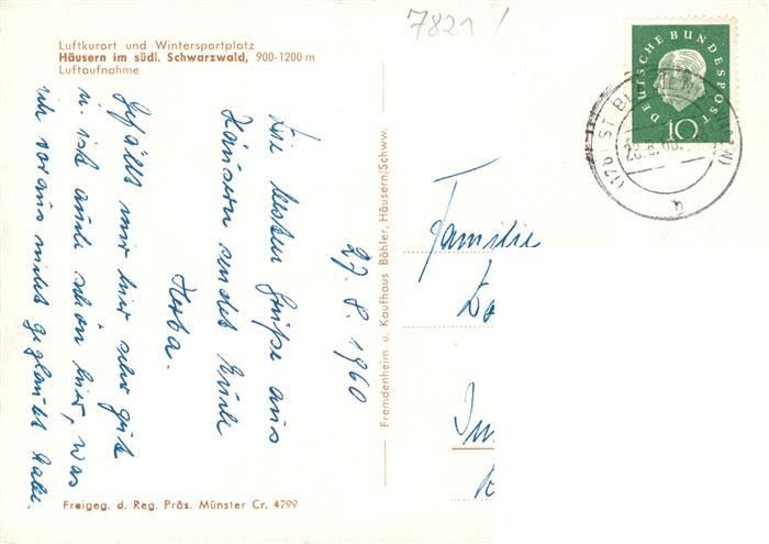 73871717 alte Postkarte Haeusern Schwarzwald Panorama Luftkurort und Wintersportplatz postalisch gelaufen Fliegeraufnahme Erhaltung siehe scans [FriedD77] KatCode: 11110008337045