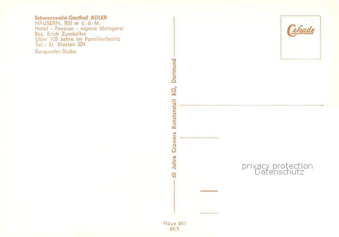 73081775 Haeusern Schwarzwald Schwarzwald Gasthaus Adler postalisch nicht gelaufen Erhaltung siehe scans [LiesaD40] KatCode: 11110008337045