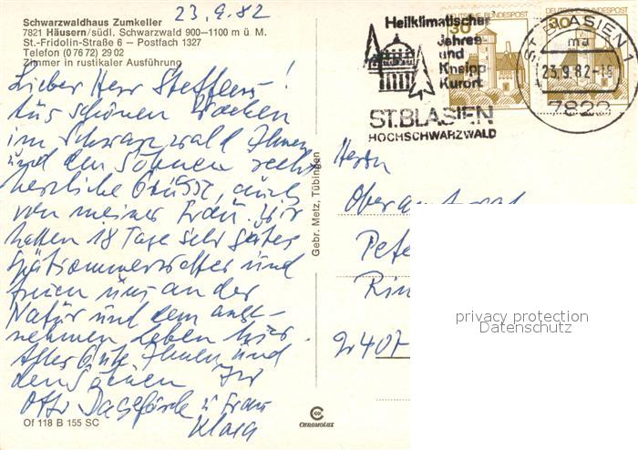 73664613 alte Postkarte Haeusern Schwarzwald Schwarzwaldhaus Zumkeller Gaststube postalisch gelaufen Erhaltung siehe scans [WerneD78] KatCode: 11110008337045