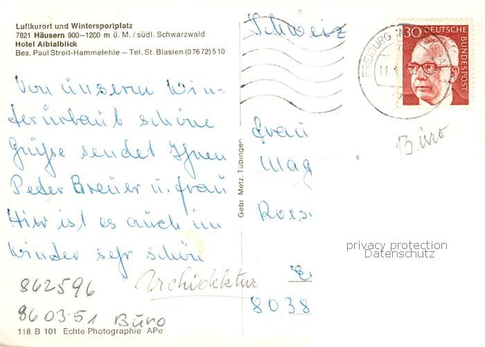 73794266 alte Postkarte Haeusern Schwarzwald Teilansicht im Winter m. Hotel Albtalblick postalisch gelaufen Erhaltung siehe scans [LiesaD40] KatCode: 11110008337045