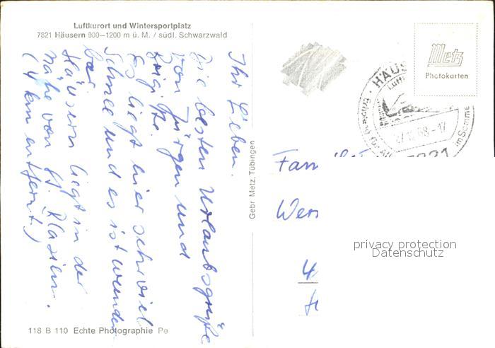 72190607 alte Postkarte Haeusern Schwarzwald Winter Panorama postalisch gelaufen Erhaltung siehe scans KatCode: 11110008337045