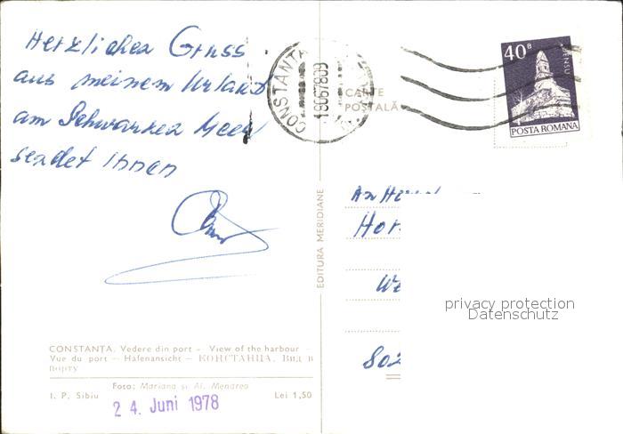 alte Postkarte Hafenanlagen Constanta postalisch gelaufen Erhaltung siehe scans