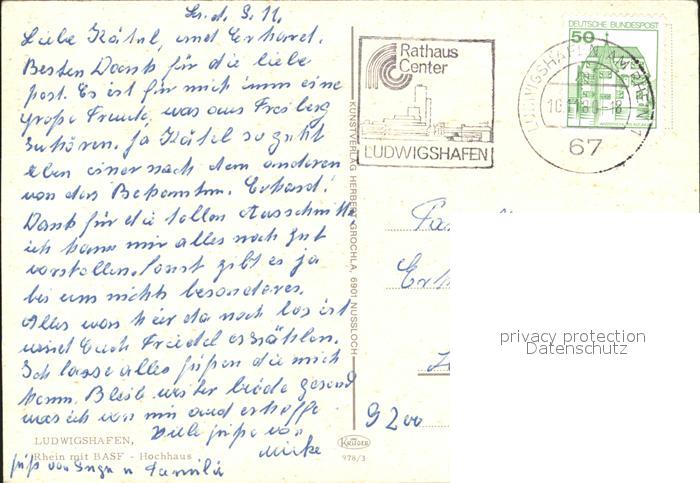 alte Postkarte Hafenanlagen Frachtschiffe Ludwigshafen Rhein BASF-Hochhaus postalisch gelaufen Erhaltung siehe scans