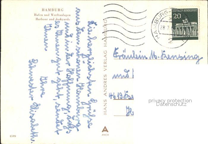 alte Postkarte Hafenanlagen Hamburg Werftanlagen postalisch gelaufen Erhaltung siehe scans