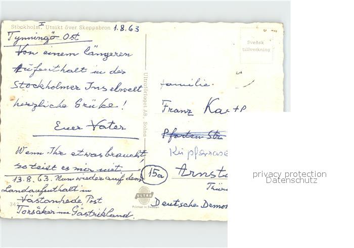 alte Postkarte Hafenanlagen Stockholm Utsikt oever Skeppsbron postalisch gelaufen Erhaltung siehe scans