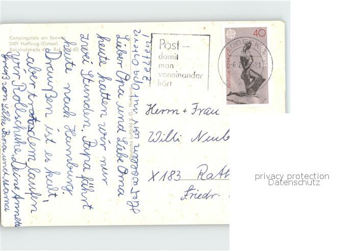 72331468 alte Postkarte Haffkrug Ostseebad Campingplatz am Seeweg Fliegeraufnahme postalisch gelaufen Erhaltung siehe scans KatCode: 11110001055044
