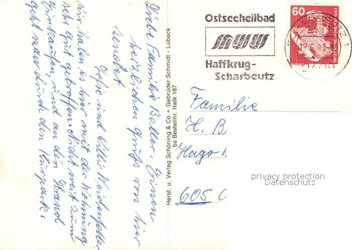 73270861 alte Postkarte Haffkrug Ostseebad Fliegeraufnahme Strand postalisch gelaufen Erhaltung siehe scans [KathaD81] KatCode: 11110001055044