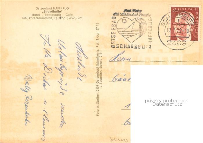 73662595 alte Postkarte Haffkrug Ostseebad Hotel Restaurant Cafe Strandhalle Strand Ansicht vom Meer aus postalisch gelaufen Erhaltung siehe scans [FriedD77] KatCode: 11110001055044