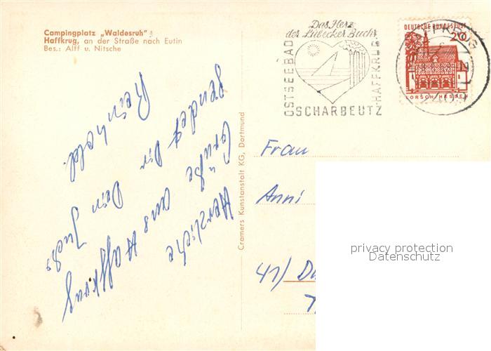 72939442 alte Postkarte Haffkrug Ostseebad Strand Seebruecke Campingplatz Waldesruh postalisch gelaufen Erhaltung siehe scans [WerneD78] KatCode: 11110001055044