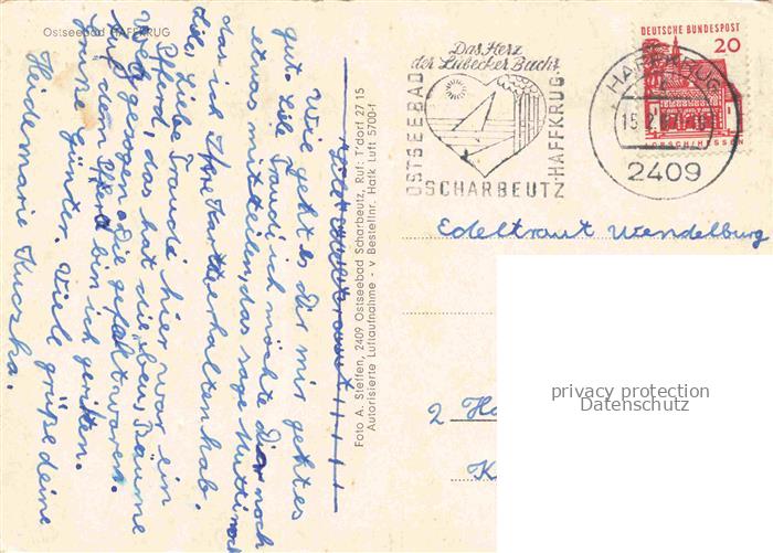 74096008 alte Postkarte HAFFKRUG SCHARBEUTZ Ostseebad Fliegeraufnahme mit Seebruecke postalisch gelaufen Erhaltung siehe scans [WerneD78] KatCode: 11110001055044