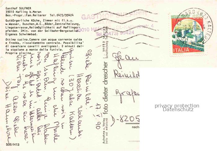 74079716 old postcard Hafling Avelengo-Falzeben IT Gasthof Sulfner postalisch gelaufen Erhaltung siehe scans [WerneD78] KatCode: 11240