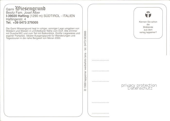 Hafling Garni Wiesengrund postalisch nicht gelaufen Erhaltung siehe scans